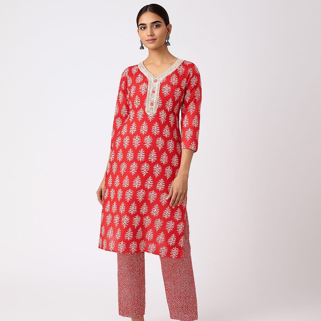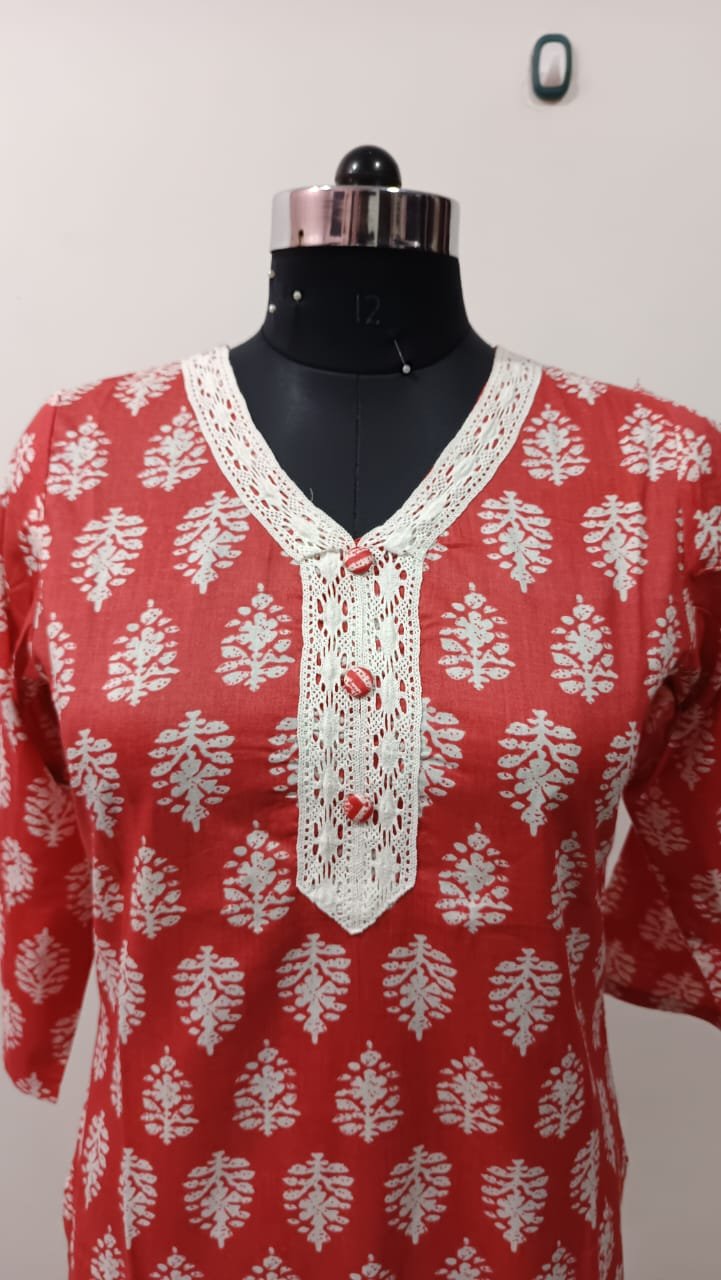 Cotton Print 60*60 Neck Crosiya Lases+ Botton. Pant All Over Lastik & One Sided Pocket.